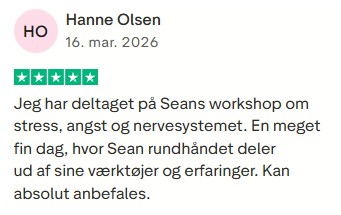 "Jeg kan varmt anbefale Seans workshop som både gav rigtig gode værktøjer til at få stressniveau og et presset nervesystem ned i niveau, og ligeledes rigtig god undervisning omkring hvad stress og følgevirkninger heraf konkret er, og hvordan man selv kan arbejde for at bringe disse i bedring."